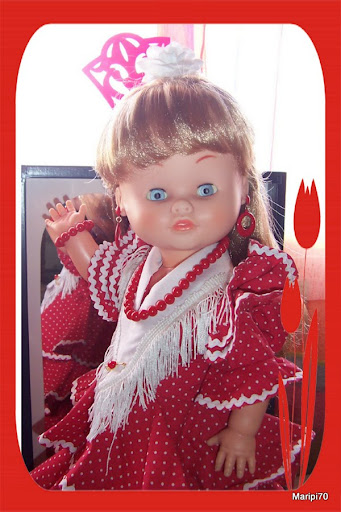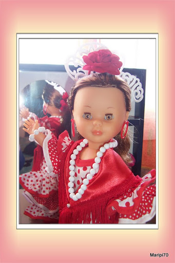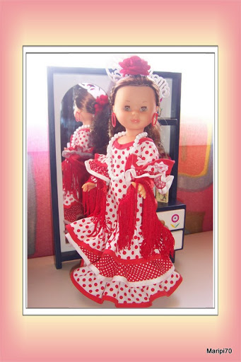 Bueno, lo primero es la presentación "oficial" de mi Nancy Flamenca, tengo que decir que me ha gustado más de lo que me imaginaba. Me parece muy bonita, el vestido es precioso, muy de los años 70, y los complementos no están mal pero...