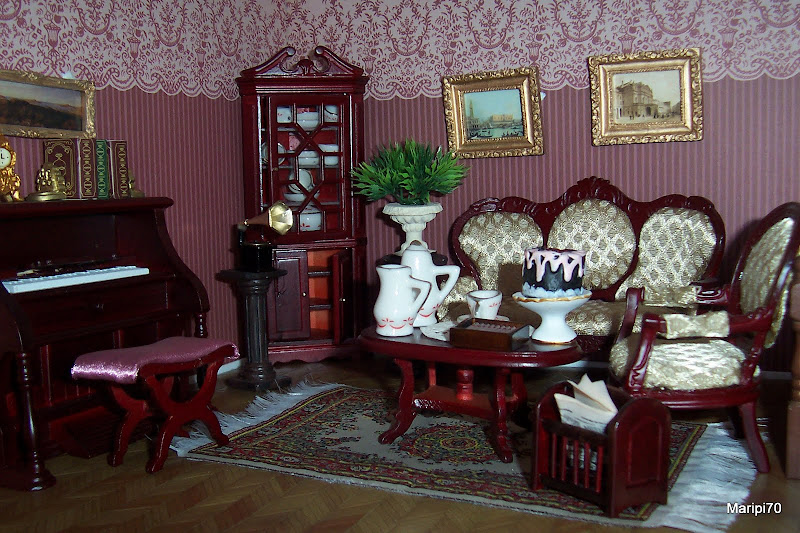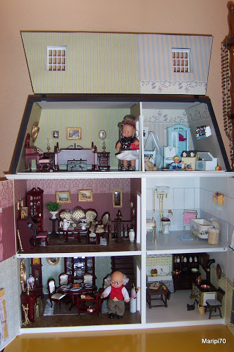 A diferencia de la primera, ésta la he montado con los fascículos del coleccionable de RBA, la casa era muy barata y aproveché...( no tiene la misma calidad que la otra, es de resina) pero el mobiliario es muy bonito, y quería tener una casa estilo victoriano.