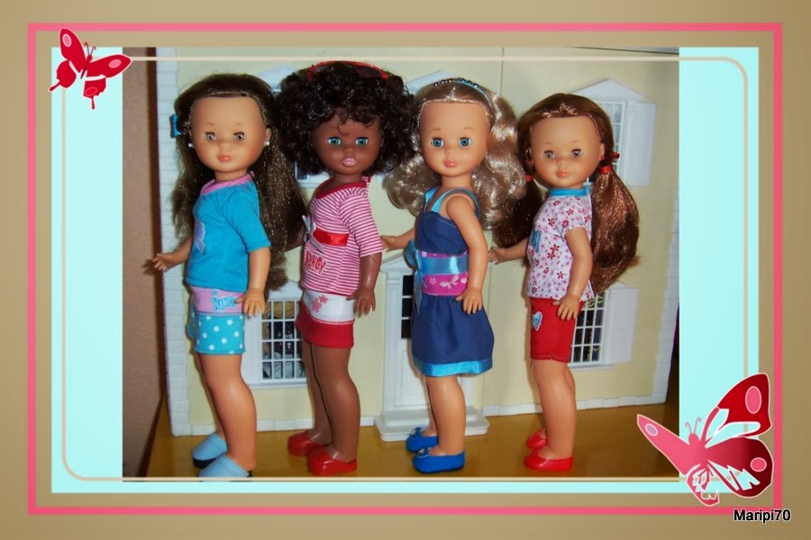 Pero claro no iba a ir a la fiesta de cotillón ella sola, sus hermanas querían acompañarla, así que nada.... a preparar vestidos de fiesta y cómo este año me he atrevido a ir haciendo algunas réplicas pues quise hacer algún vestido de los que más me gustaba cuando era pequeña (el problema es que me gustaban demasiados, de momento he optado por éstos cuatros: Puesta de largo, Cocktail, Liceo y Chal)
