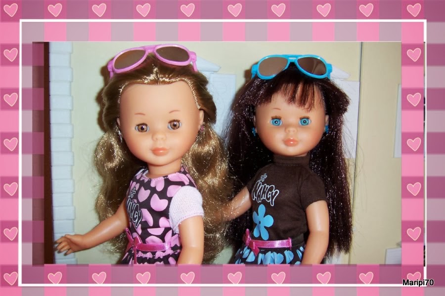 Hace tiempo que os quería enseñar a mis niñas con sus nuevos trajes, son de la colección de la new que salió en el 2012 con el nombre de Vestidos Glamurosos, estos me gustaron especialmente venían en un pack con dos conjuntos, uno en azul y otro en rosa.