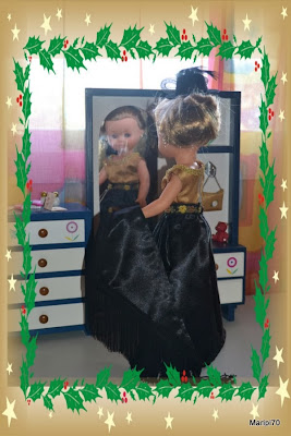 Pero claro no iba a ir a la fiesta de cotillón ella sola, sus hermanas querían acompañarla, así que nada.... a preparar vestidos de fiesta y cómo este año me he atrevido a ir haciendo algunas réplicas pues quise hacer algún vestido de los que más me gustaba cuando era pequeña (el problema es que me gustaban demasiados, de momento he optado por éstos cuatros: Puesta de largo, Cocktail, Liceo y Chal)