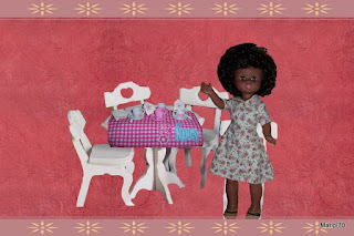 Luego llegó el momento más esperado, sacar cada una a su muñeca, quita ganchitos, corta fixos, etc... vamos una clase de manualidades en toda regla.