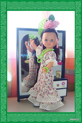 Bueno, lo primero es la presentación "oficial" de mi Nancy Flamenca, tengo que decir que me ha gustado más de lo que me imaginaba. Me parece muy bonita, el vestido es precioso, muy de los años 70, y los complementos no están mal pero...