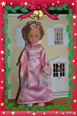 Pero claro no iba a ir a la fiesta de cotillón ella sola, sus hermanas querían acompañarla, así que nada.... a preparar vestidos de fiesta y cómo este año me he atrevido a ir haciendo algunas réplicas pues quise hacer algún vestido de los que más me gustaba cuando era pequeña (el problema es que me gustaban demasiados, de momento he optado por éstos cuatros: Puesta de largo, Cocktail, Liceo y Chal)