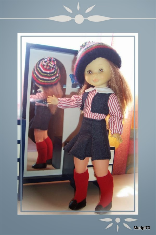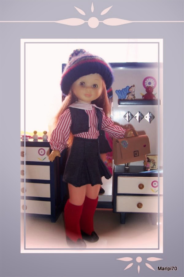 Quise hacer un conjunto que combinara bien con la boina y pensé que le venía genial el conjunto Colegiala, así que aprovechando el comienzo del curso escolar, aquí está mi Nancy Pelirroja con la réplica del Colegiala