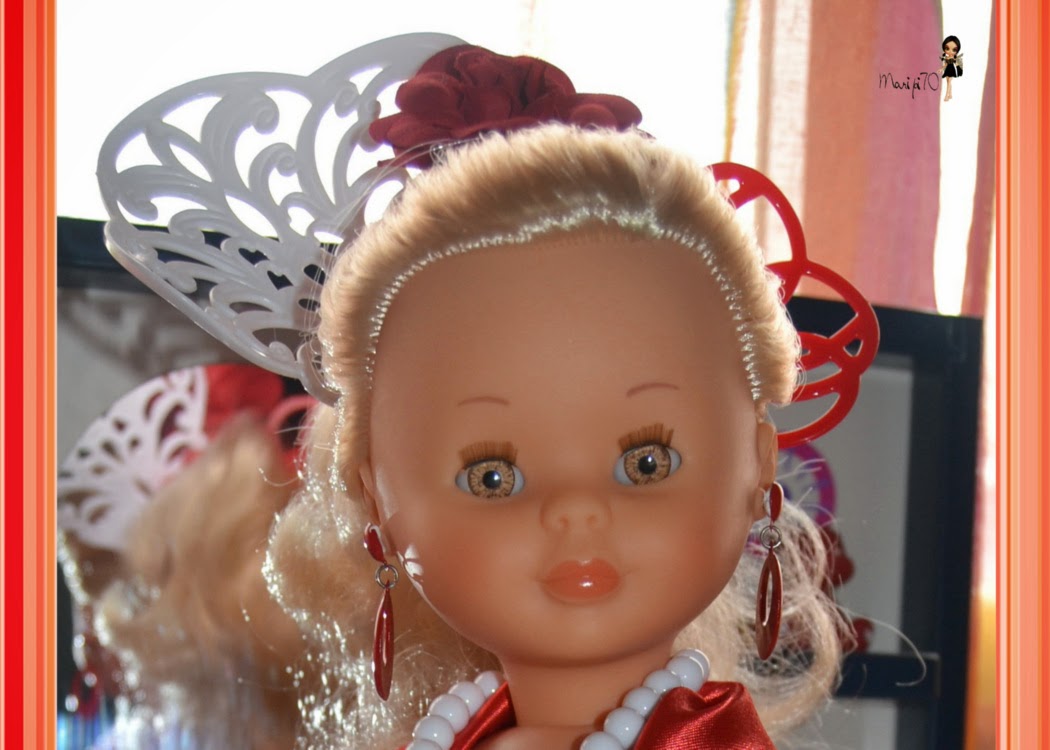 Y este año he querido que mi Geisha setentera estrenara un nuevo vestido de gitana, tenía hecha la réplica en roja y pensé que a ella le vendría bien en azul, así que me puse a ello y éste es el resultado